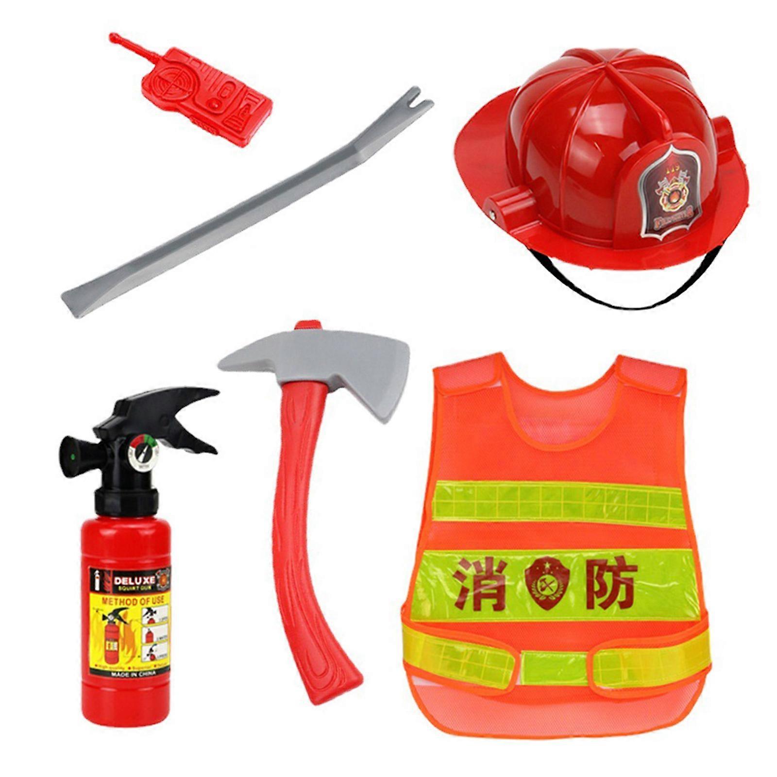 6pcs Washable Kid Fireman Costume for Boys,Girls,Toddlers,and Children with Complete Firefighter Accessories Pretend Toy Red