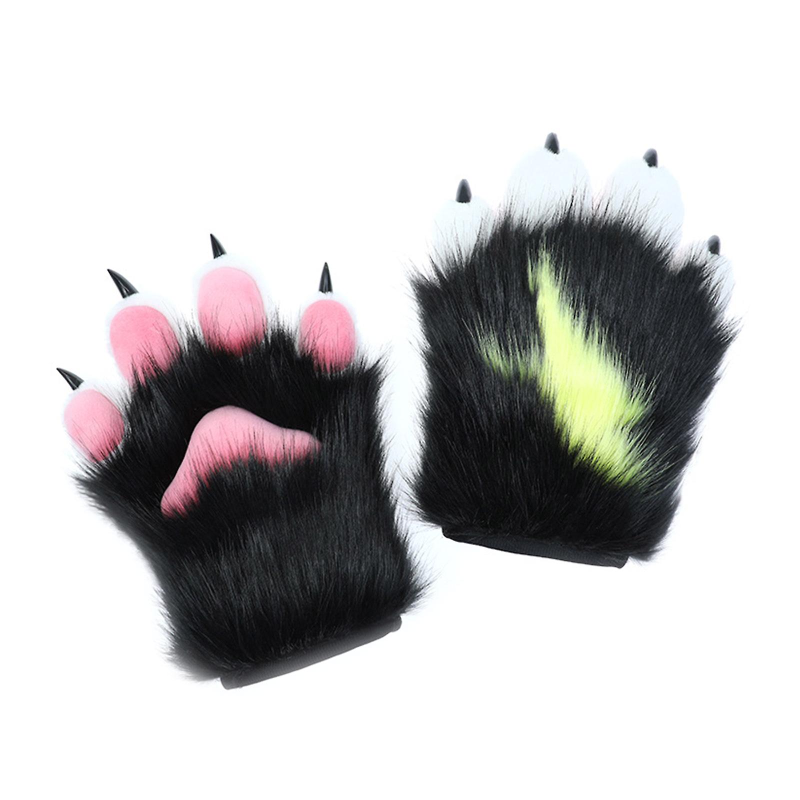 Boys Girls Cartoon Animal Paw Shape Gloves Cosplay Vividly Plush Mittens