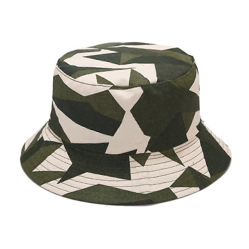 Unisex Outdoor Hiking Bucket Hat Contrast Color Camouflage Reversible Panama Cap Green