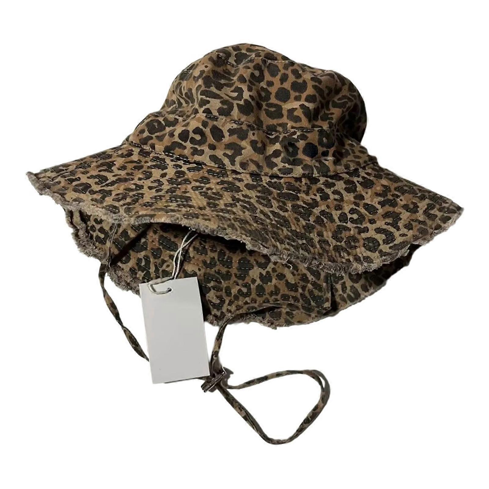 Unisex Sun Hat Leopards Pattern Wide Brims Outdoor Sun Protection Headwear Animal Print Design Spring or Summer Hat Khaki
