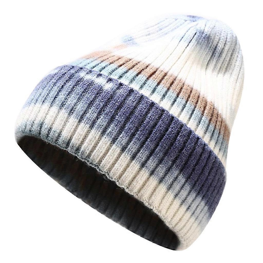 Unisex Winter Warm Ribbed Knit Beanies Hat Gradient Tie-Dye Harajuku Hip Hop Outdoor Sport Ski Stretch Cuffed Skull Cap C