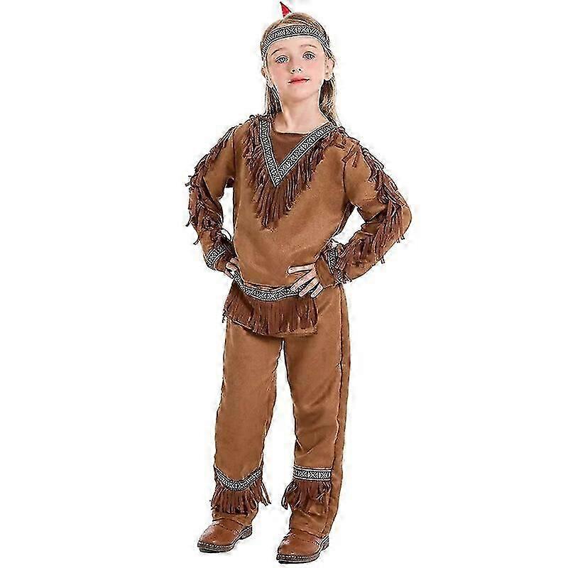 Unisex Child Kids Native Americans Costumes for Boys Girls Top Pants Set Thanksgiving Purim Fantasia 3-4T 4-10T 10-12Y