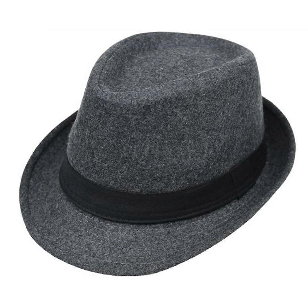 Men Women Unisex Vintage Wide Brim Fedora Hats Flat Top Solid Color Curved Trim Gray