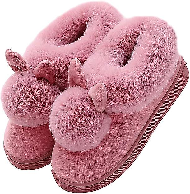 Simple Home Bunny Girl Cotton Slippers For Men And Women Winter New Indoor Non-slip Thickening Warm Home Plush Slippers2pcs-red