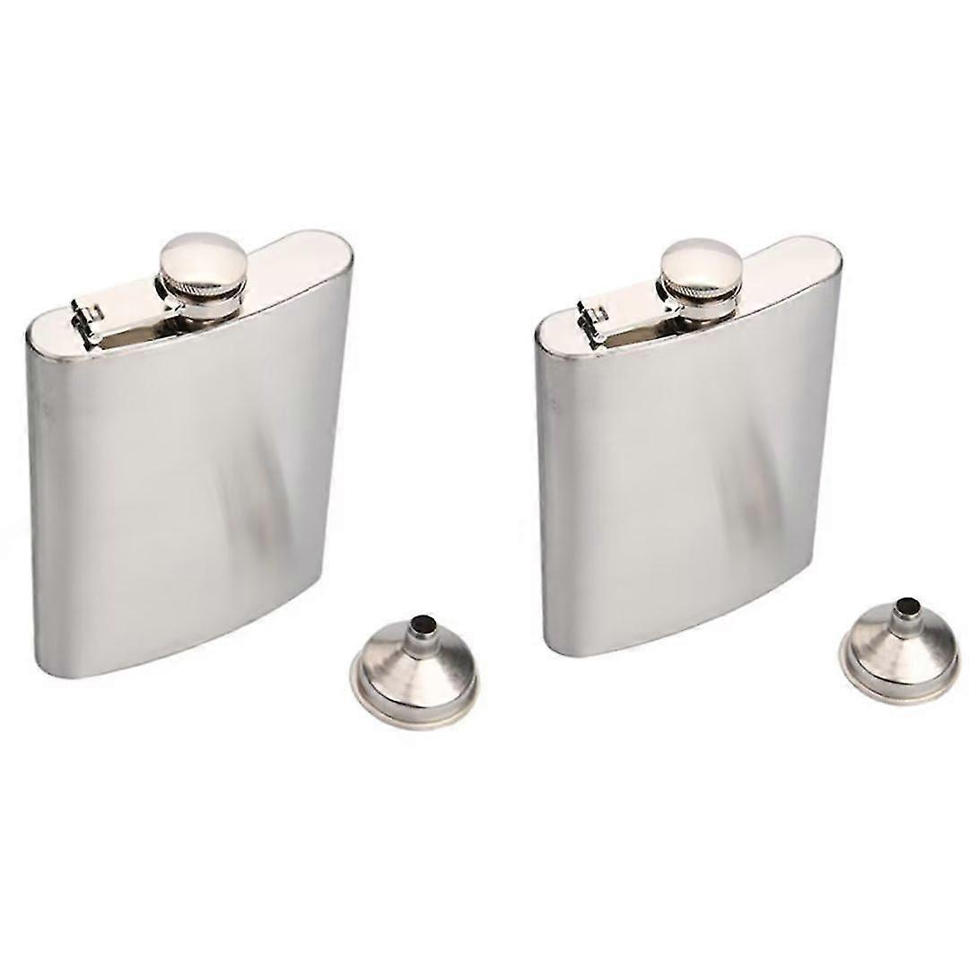 2 Stainless Steel Hip Flasks with Leak-Proof Funnel for 8 Ounce Liquor for Men and Women (Silver)