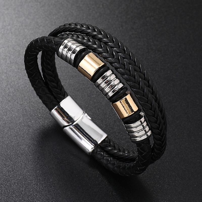 Vintage Trendy Leather Woven Bracelets For Men Multi-layer Alloy Steel Retro Magnet Clasp Chrm Bracelets Jewelry Gifts Wholesale