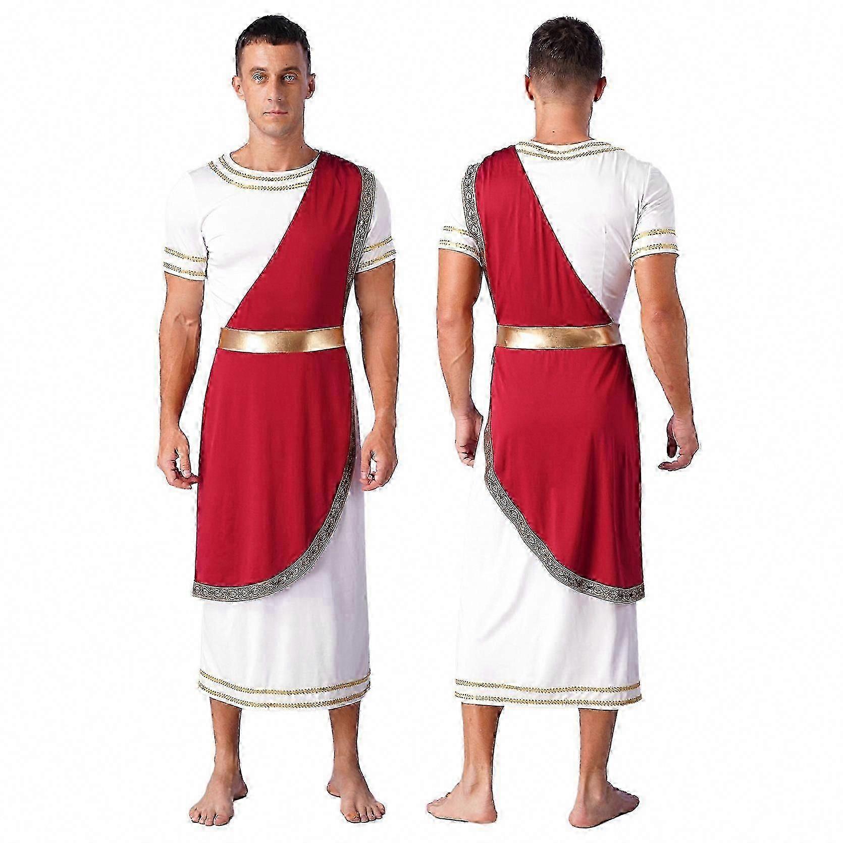 Ancient Greek Roman Spartan Warrior Costume for Men - Vintage Toga Cosplay Outfit with Short Sleeves