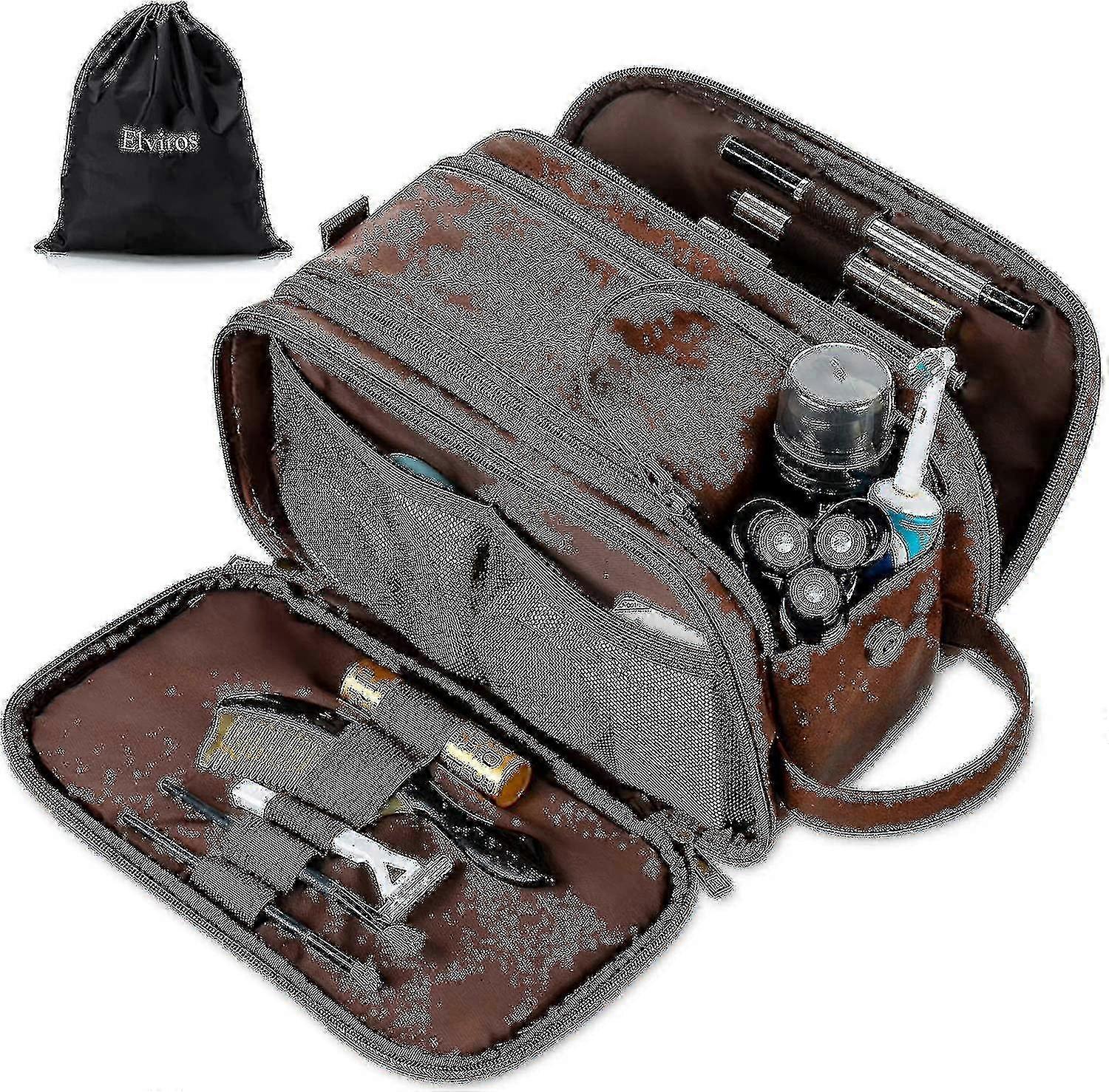 Large Water-resistant Leather Travel Toiletry Bag for Men: Wash, Shaving, Makeup Organizer