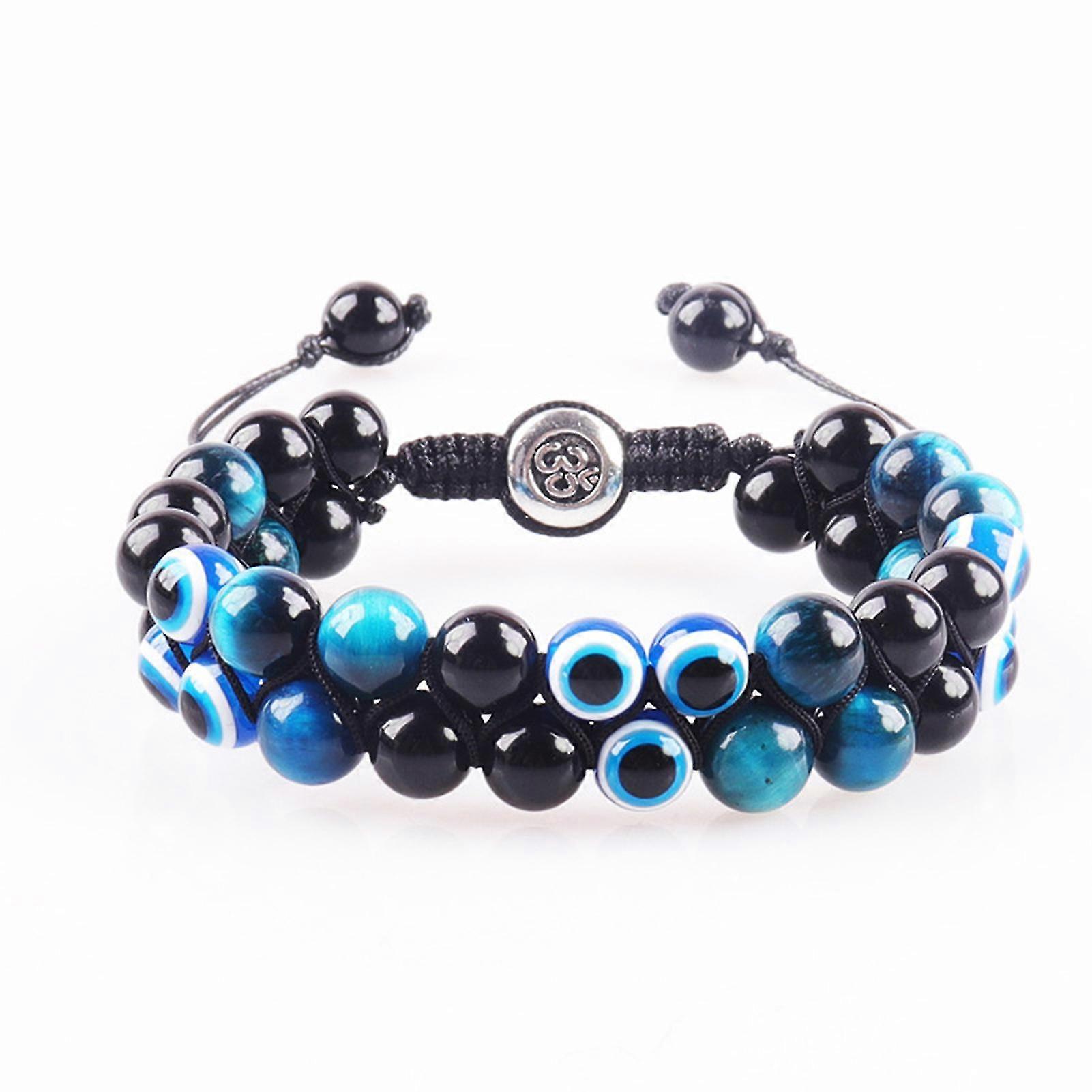 Devil's Eye Beaded Bracelet for Male Personalized Double Row Braideds Bangles Stylish Jewelry Accessories