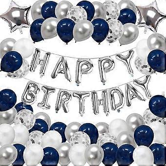 男性のための誕生日の装飾 - お誕生日おめでとうバナー、スターガーランド、紙吹雪の風船を含む青と銀のパーティー用品
