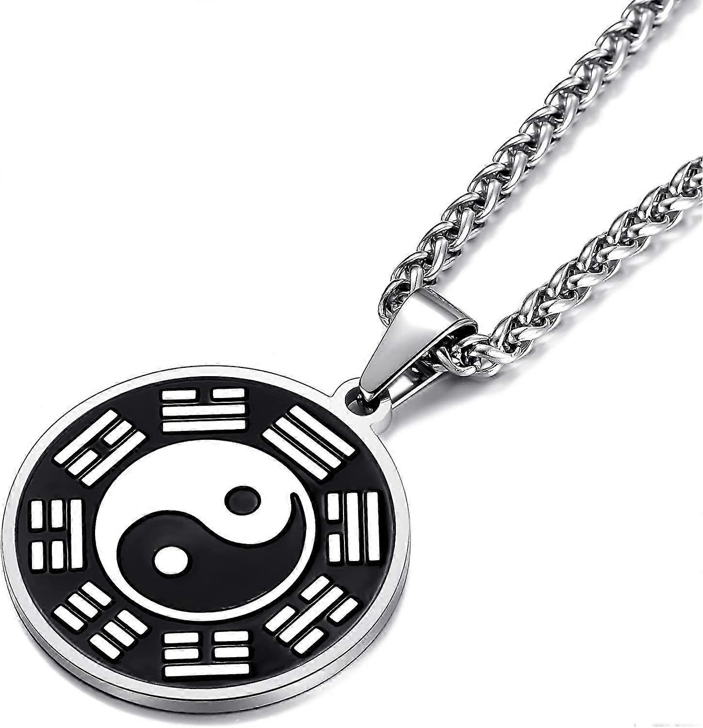 Yin Yang Trigram Pendant Necklace For Men Amulet Jewelry For Boys 24 Inch Stainless Steel Link Chain