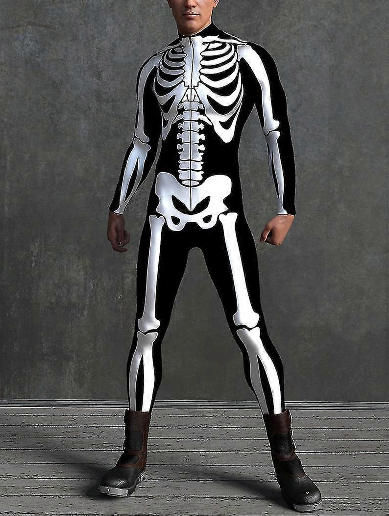 Black And White Skeleton Costume For Men - Perfect For Christmas, Halloween, And Themed Parties