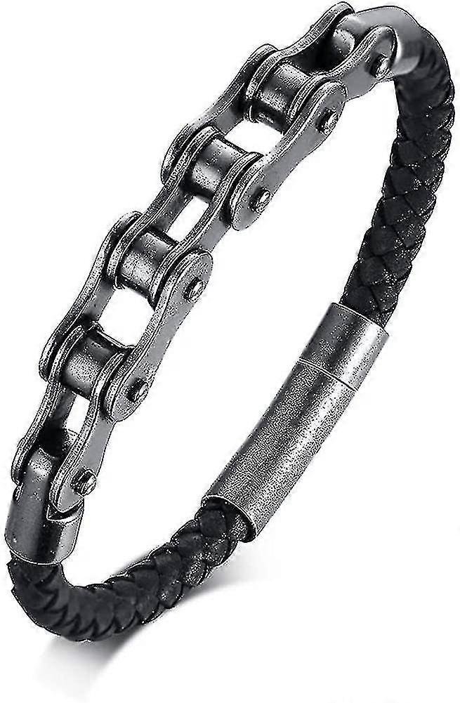 Stainless Steel Braided Leather Bike Chain 2 In 1 Cuff For Men Birthday Gift For Men