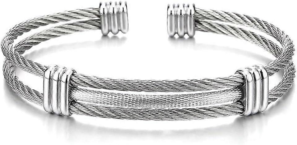 Men Women Stainless Steel Twisted Cable Adjustable Cuff Bangle Bracelet