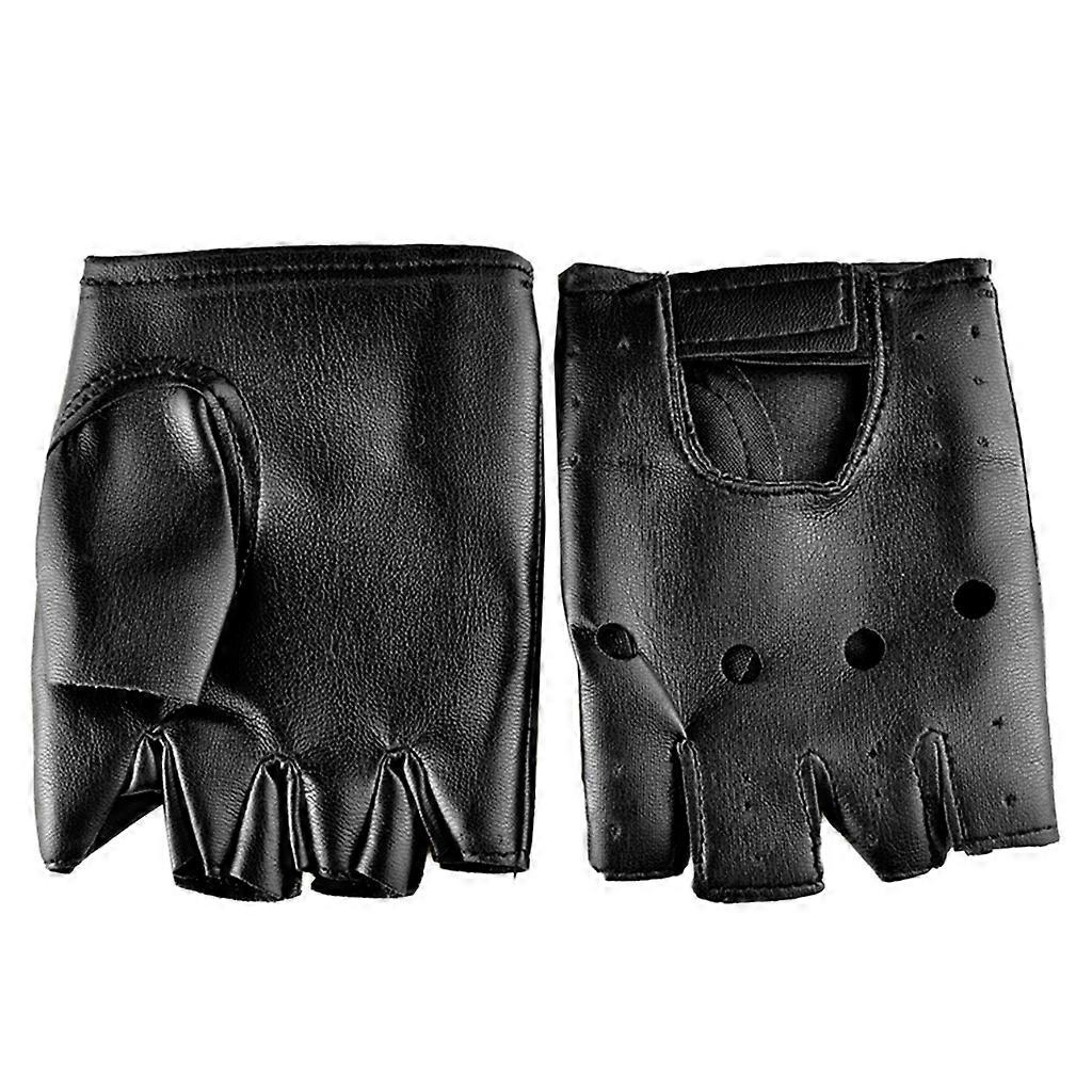 Men Women Black Faux Leather Black Fingerless Gloves Biker Punk Motorcycle Riding Driving Adjustable Half Finger Mittens Black