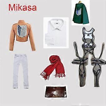 男性/女性ミカサコスプレコスチュームエレンイェーガー衣装リヴァイアッカーマンハンジコスプレコスチュームフルセットシャツパンツケープスカーフ