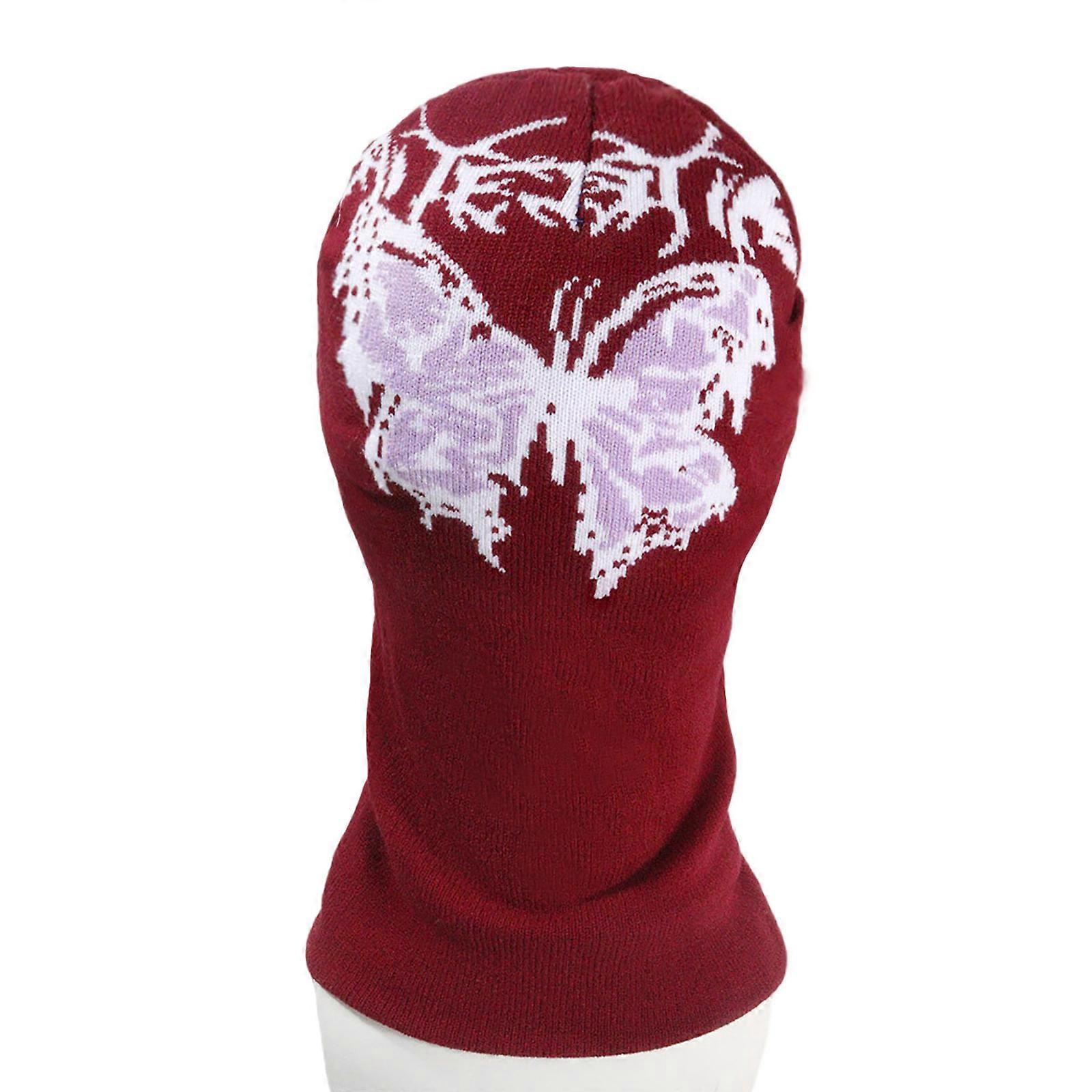 Windproof Balaclava Hat for Men Women Jacquard Knit Beanie Hat Pilling Resistant Balaclava Cap Full Face Mask Ski Hat Burgundy