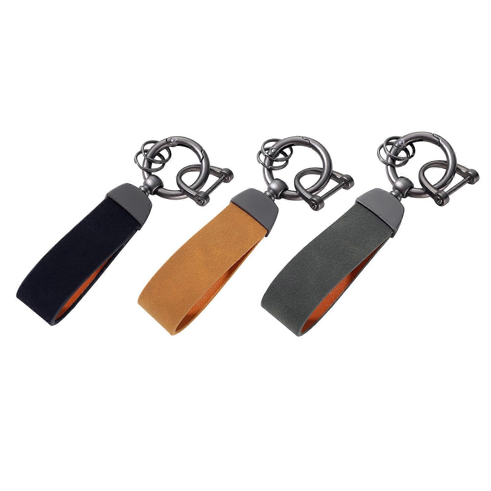 3pcs Suede Leather Keychain with D-Ring for Men Women Stylish Breathable Leather Keyring for Car Enthusiasts Multicolor