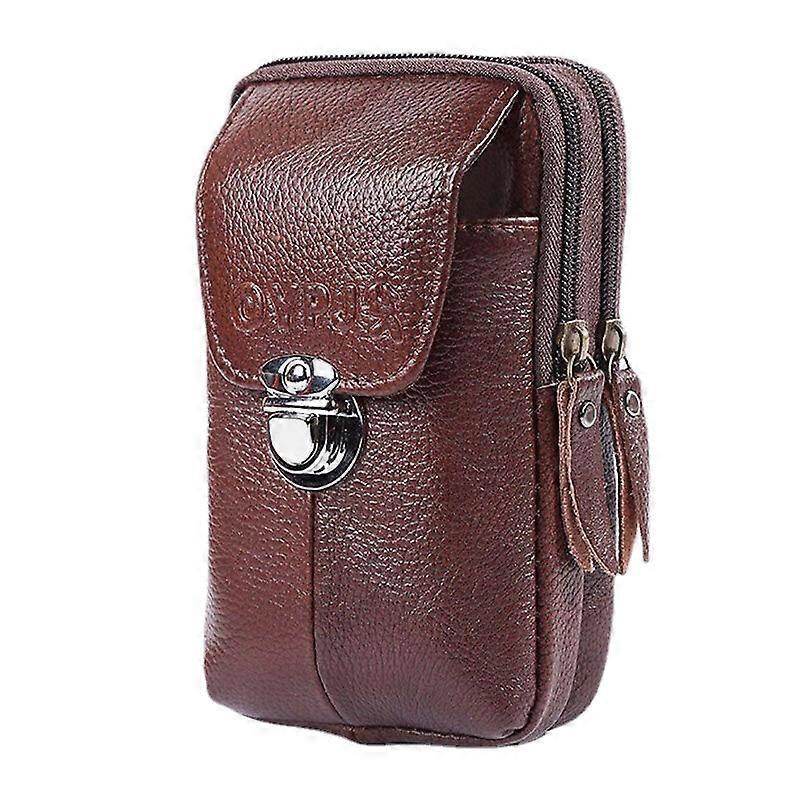 Men Genuine Leather Retro Business Waterproof 6.3 Inch Phone Bag Waist With Belt Loop