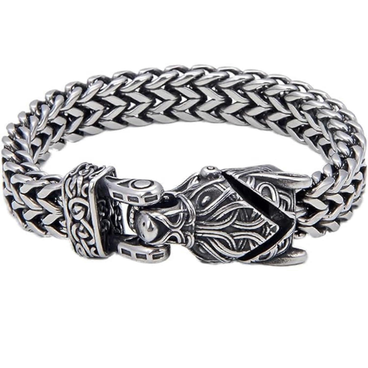Wolf Bracelet for Men, Norse Wolf Head Bracelet, Vikings Jewelry 316L Stainless Steel Bracelet Men's Mesh Chain, Nordic Jewelry