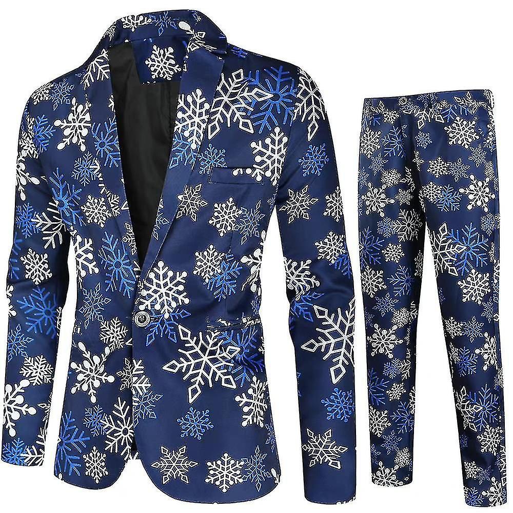 Christmas Suit For Men Snowflake Printed Blazer + Pants Xmas Casual Outfit Set Yj52