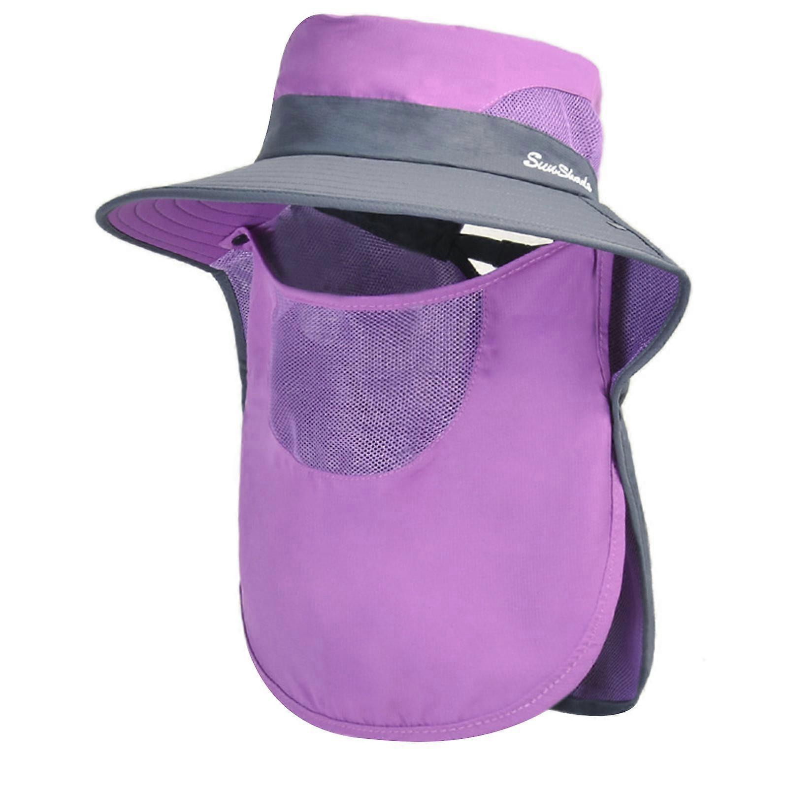 Sun Hat Fishing Hat For Men Sun Protection With Netting Safari Hat with Neck Flap Hiking Hat with Ponytail Hole two color purple