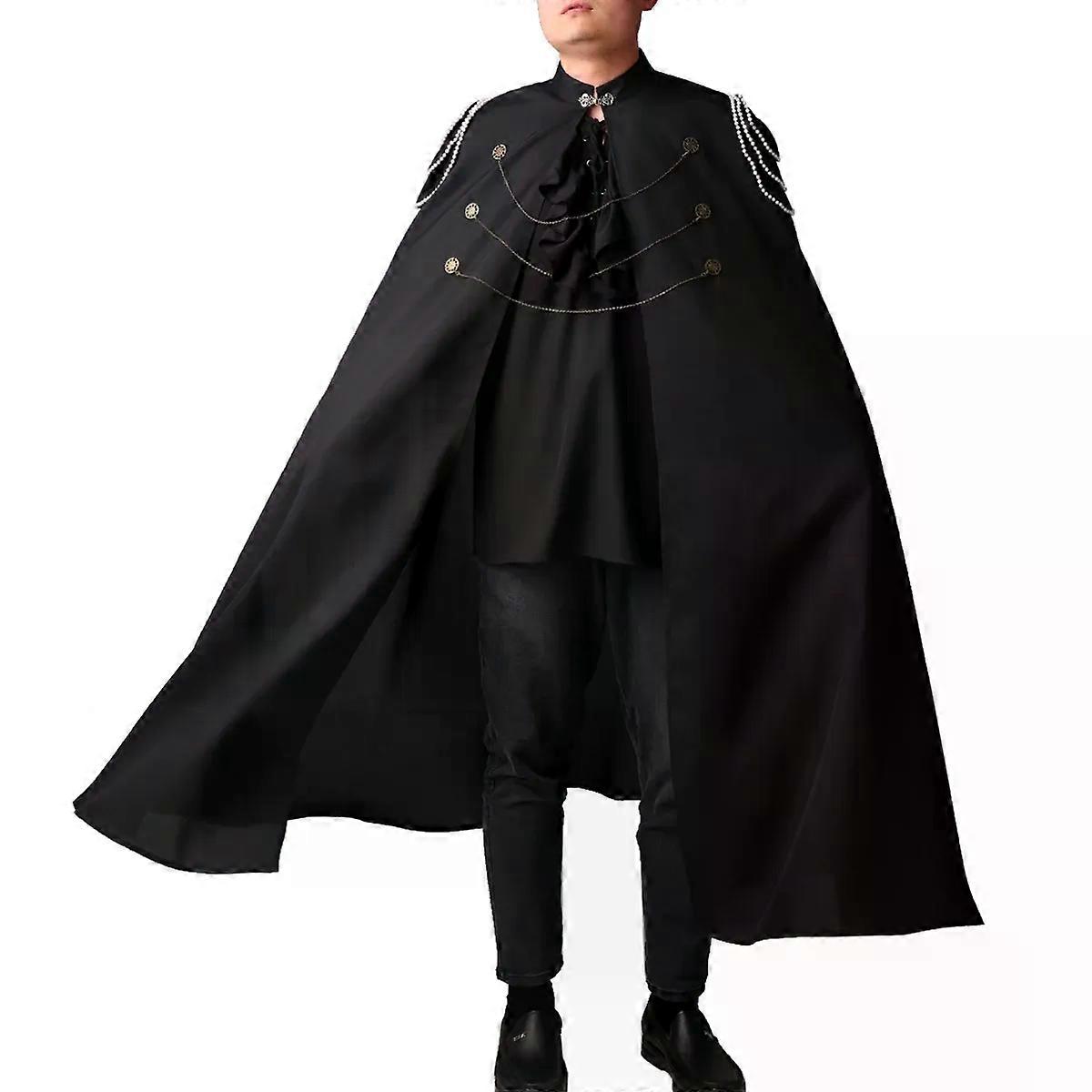 Steampunk Cape for Men Women Halloween Gothic Medieval Party Punk Cosplay Military Black Knight Viking Pirate Cloak
