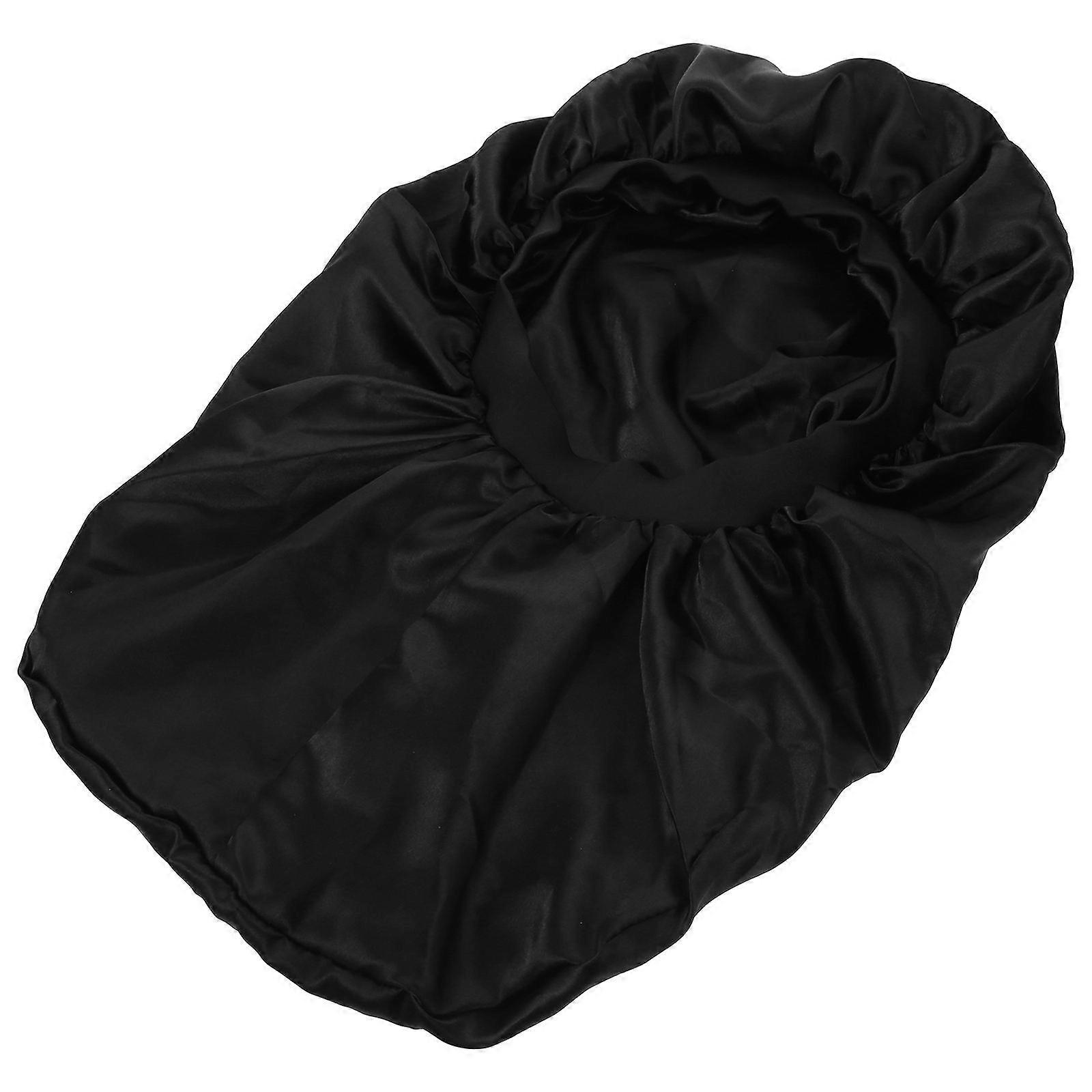 Sleep Hat For Men Satin Cylindrical Double Layer Home Use Black 45x27cm 1Set