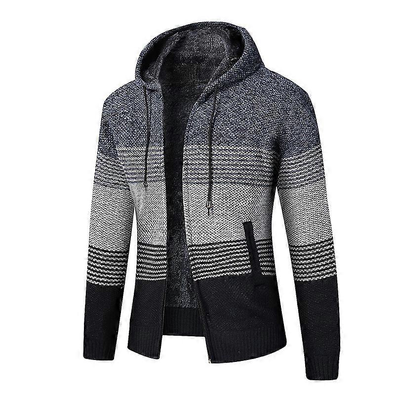 Knit Hoodies for Men Fashionable Fleece Long Sleeve Sweatshirt with Pockets Winter Warming Loose Jackets New