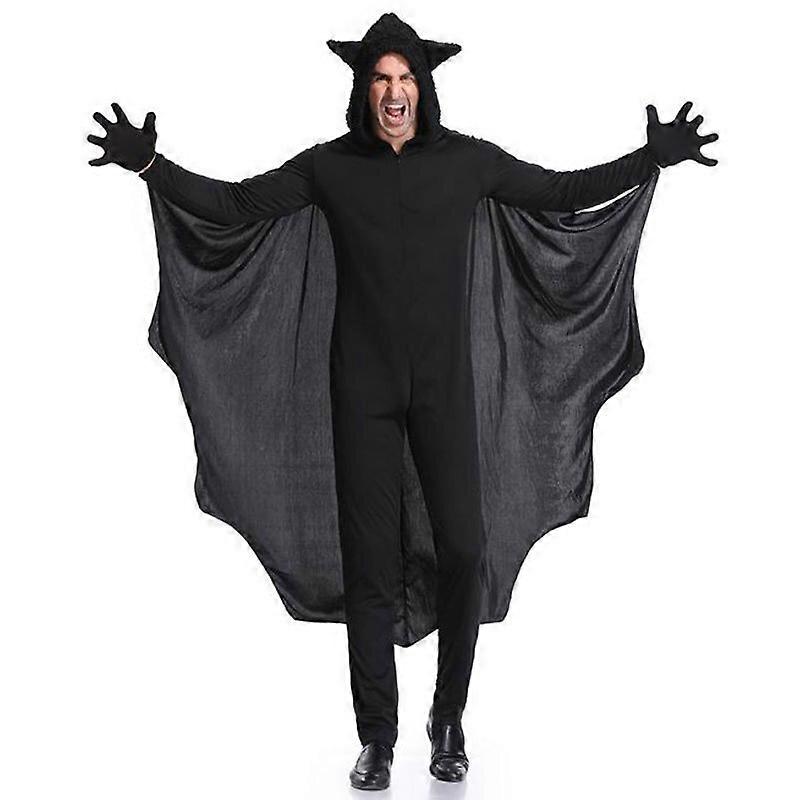 Man Black Bat Vampire Costume Cosplay for Men Hooded Jumpsuit Fantasia Halloween Carnival Dress up