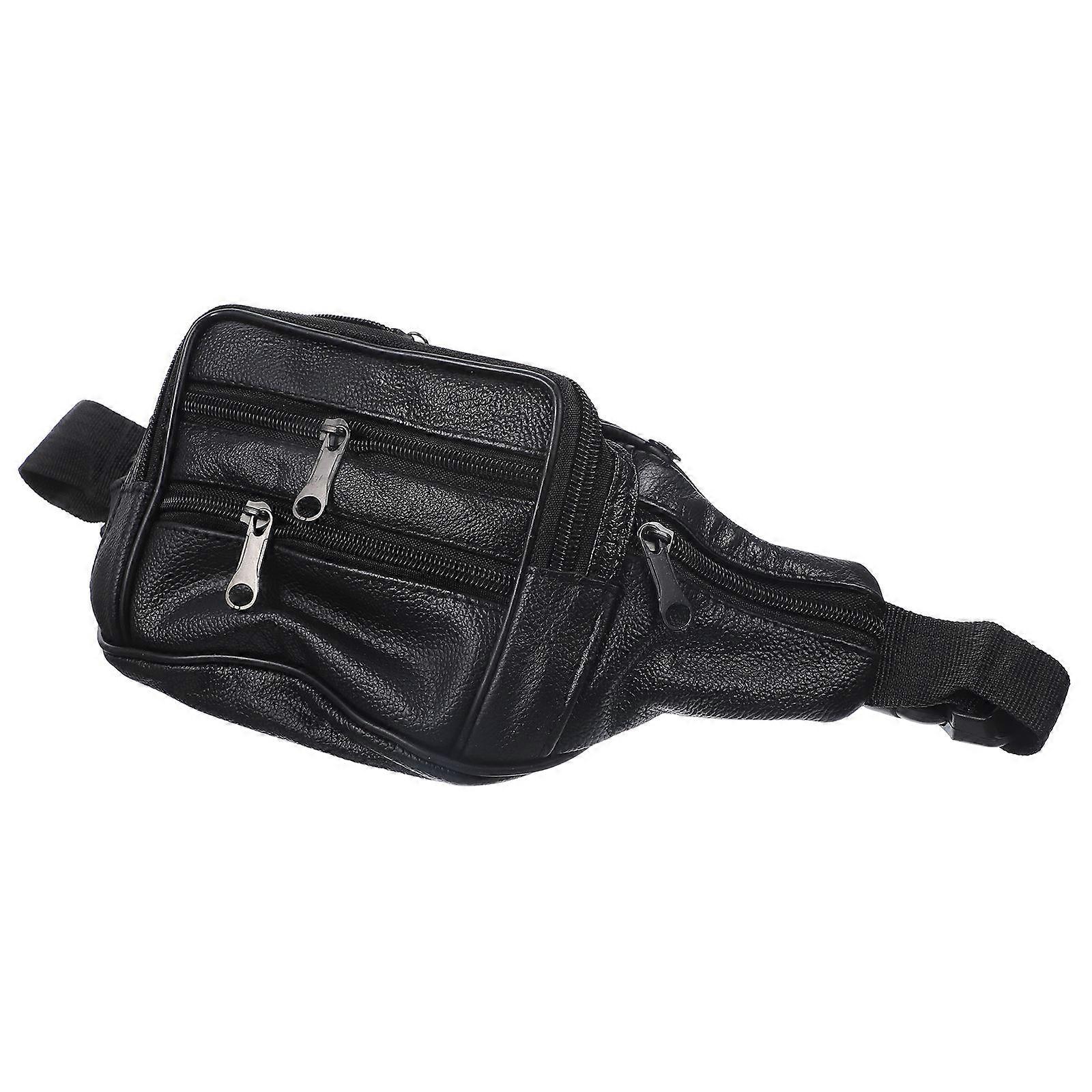 Black Leather Chest Bag For Men Waterproof Multifunctional Travel Storage Perfect For Jogging 1Set
