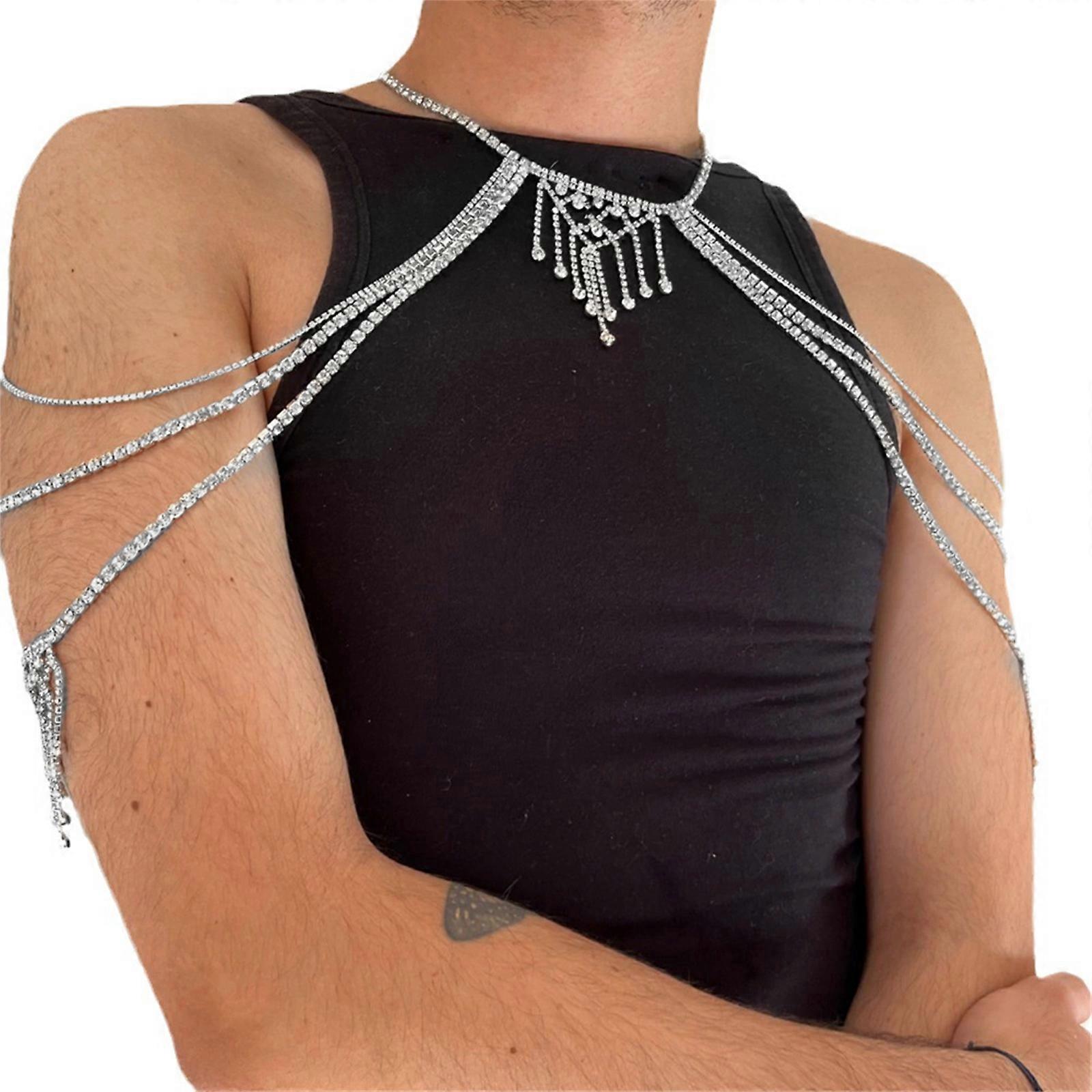 Multilayer Tassels Shoulder Chain for Men Women Unisex Shoulder Chain with Rhinestones Sexy Choker Necklace Punk Jewelry Silver