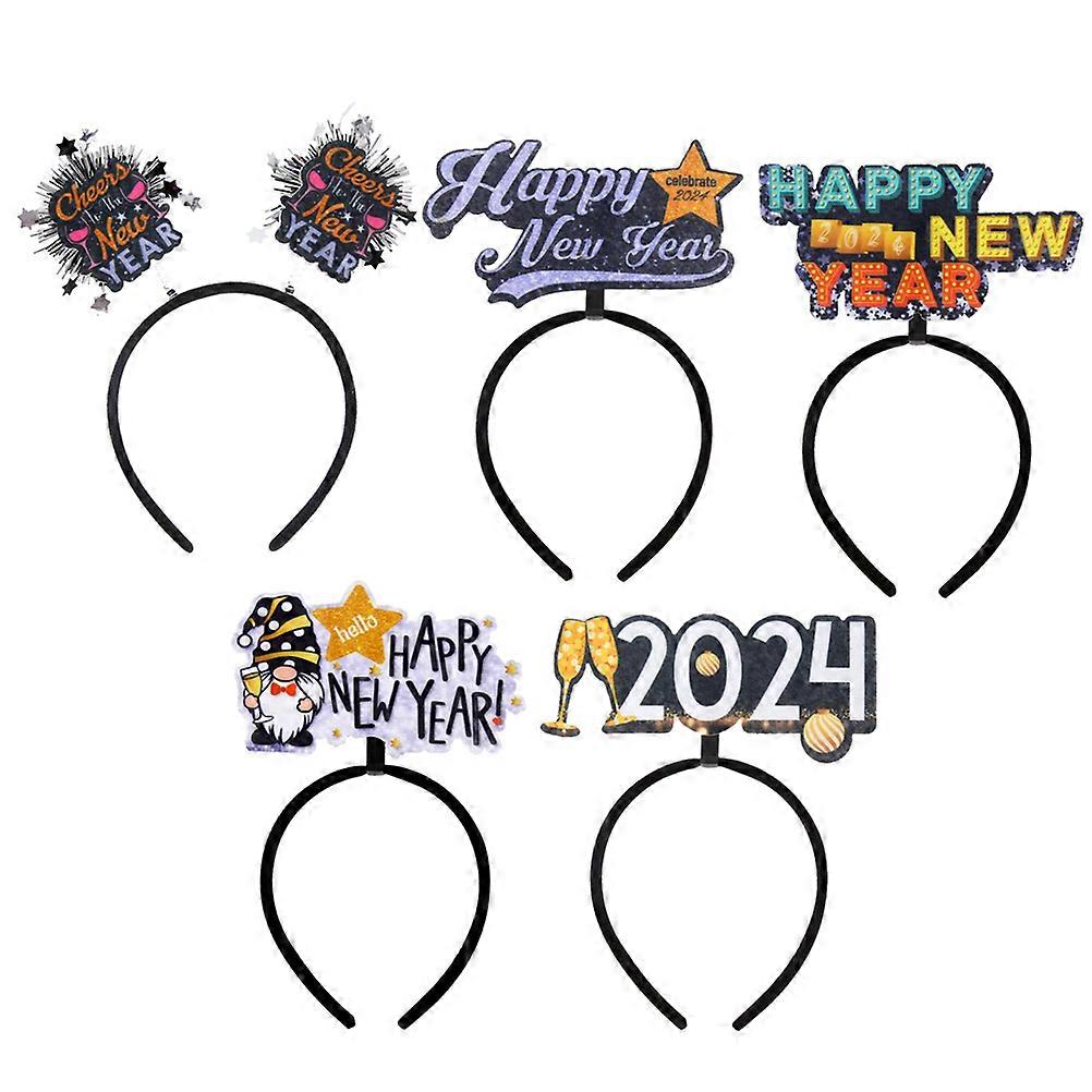 5pcs Stylish Year Party Headbands for Men Women – Lightweight Hair Hoops with Happy New Year Cheers Designs for Celebrations and Photo Props