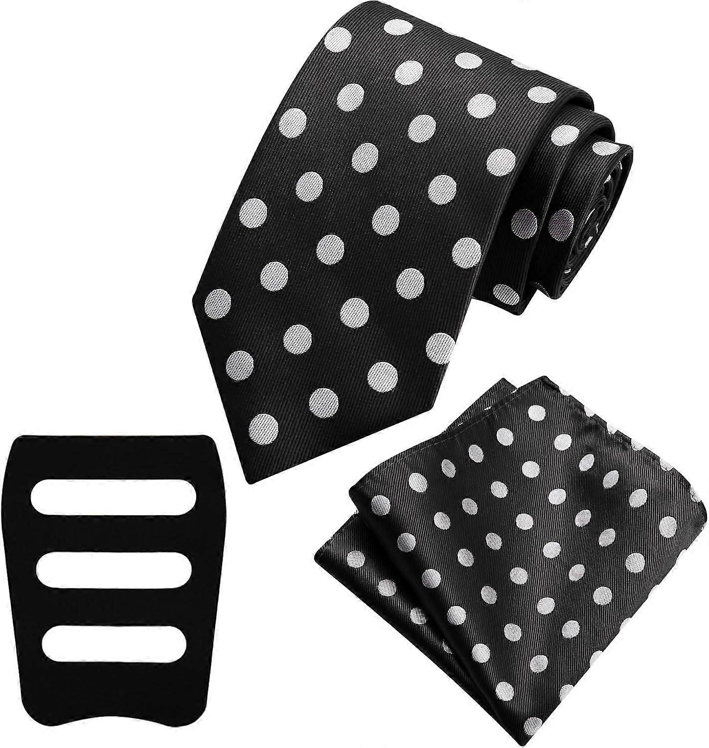 Polka Dot Ties for Men Classic Mens Neck Tie and Pocket Square Combo with Holder