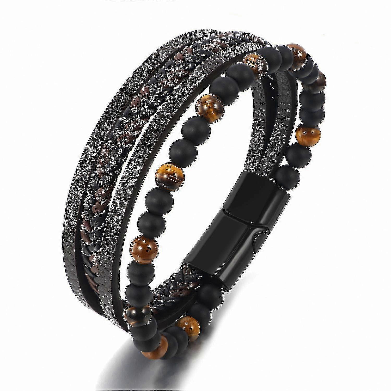Volcanic Rock Leather Steel Braided Bracelet for Men - Punk Gift