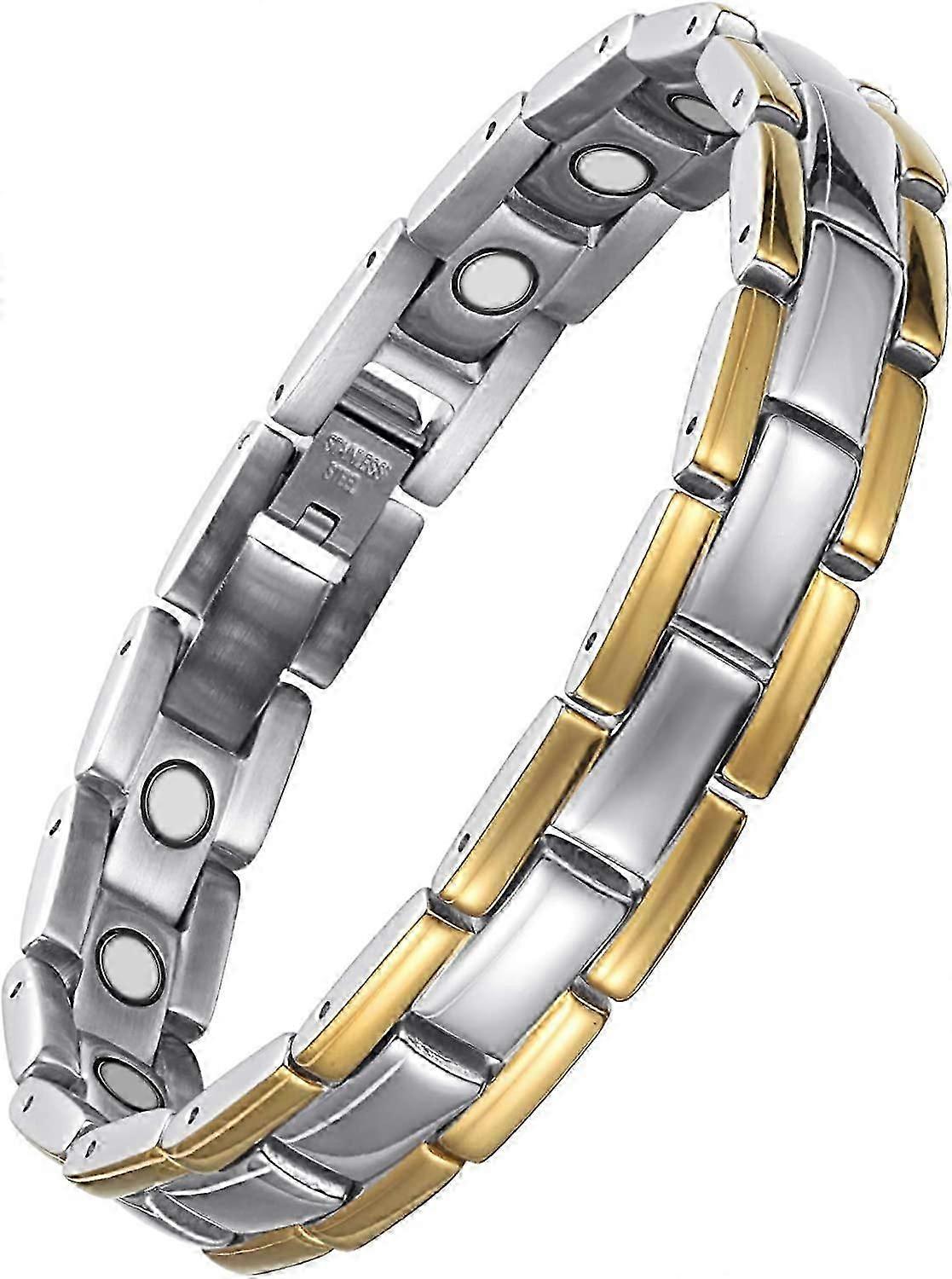 Timeless Design: Magnetic Bracelet with Delicate Polished Silver and Gold Links, Simple and Versatile, Suitable for Men, Can Match All Clothing, Casual, Business, Watches, Etc. .316L Stainless Steel Meticulously Made of Stainless Steel (316L), It Is Hypoallergenic, Durable and Waterproof, Safe to Wear, Durable and Does Not Change Color. with This High-Quality Magnetic Stainless Steel Bracelet, You Don'T Need to Worry About Skin Irritation Or Allergic Reactions! You Deserve to Have. .Adjustable Sizelength:8.8In, Width:0.47In, It Includes A Free Size tool That Allows You to Delete/Add Links. You Can Use The Adjustable tool to Adjust The Size According to The Manual and Video. If You Need, Please Contact Us. We Will Try Our Best to Help You. .Perfect Gift with Pack Acsergery Giftagingeach Magnetic Therapy Bracelet Is Equipped with A Luxurious Pack Acsergery Giftaging Box, Which Is Very Suitable As A Perfect Gift for Birthdays, Anniversaries, and Ordinary Holidays. Give It to Father, Mother, Wife, Husband, Colleagues, and Friends. They Will Be Very Happy. .Trusted Brand of Welmaghas Always Been Proud of Excellence. Established In The Field of Magnetic Bracelets for More Than 30 Years, We Always Pay attention to The Interests of Our Customers and Experience. If You Are Not Satisfied with The Purchased Goods, Please Contact Us and We Will Provide A 100% Refund. .