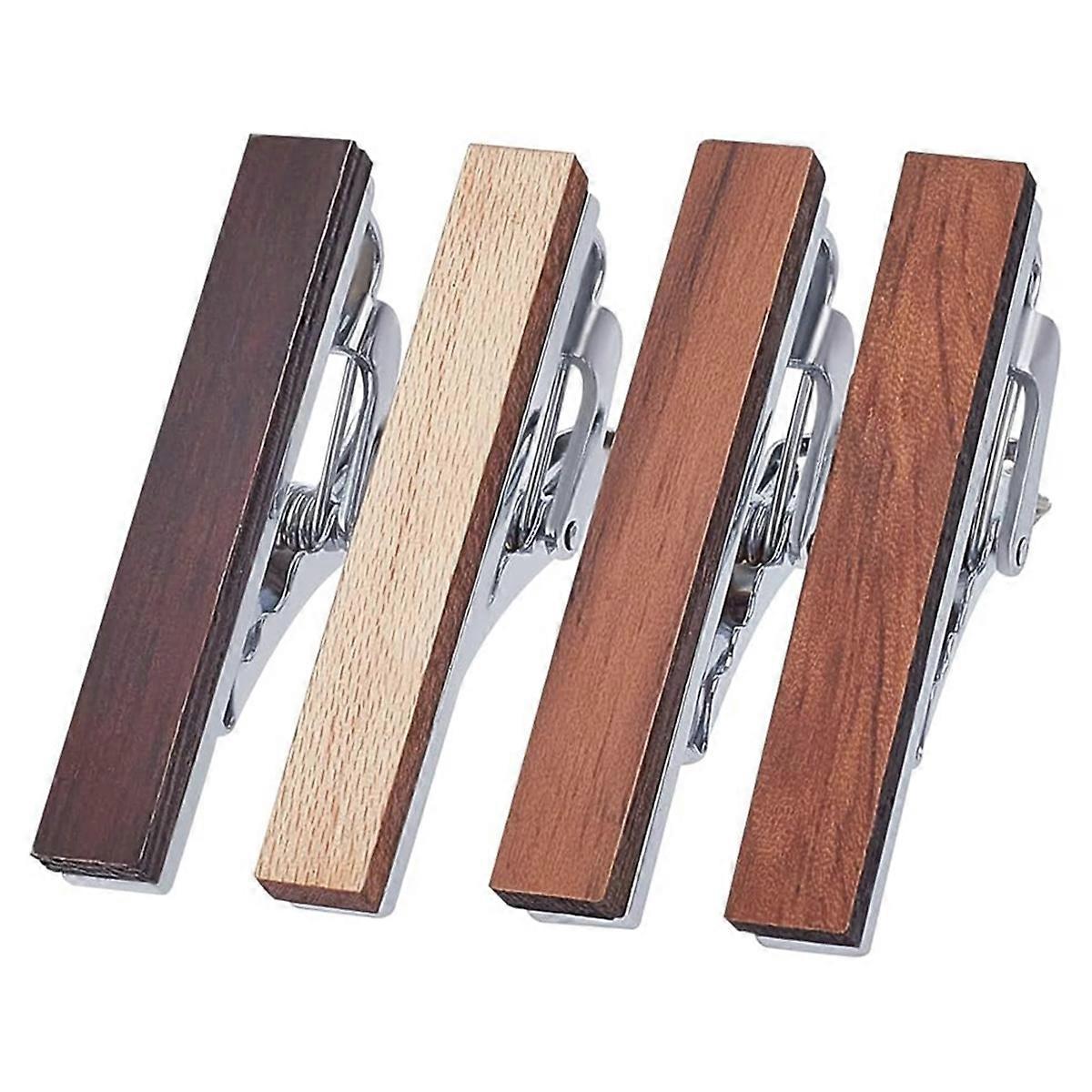 4 Pcs Wood Tie Clip for Men Natural Tie Bar Fashion Personalized Wooden Tie Slide for Wedding Anniv