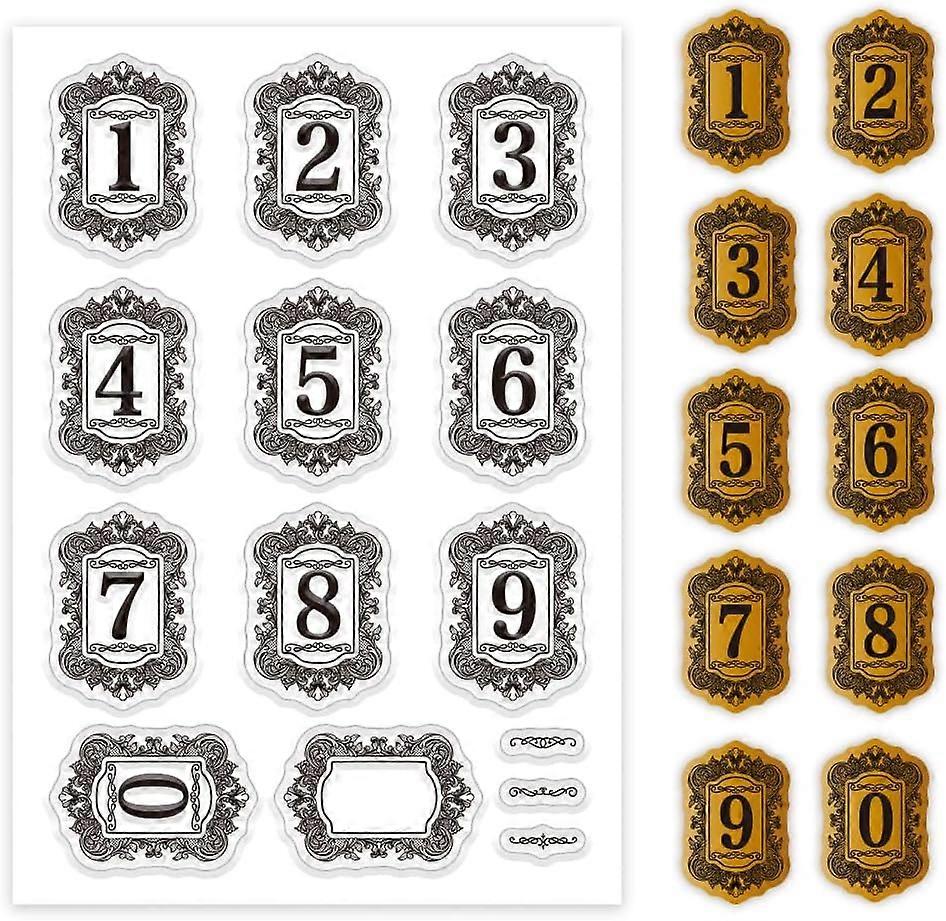 Number Clear Stamps Retro Frame Rubber Stamps Letter Transparent Seal Stamp Number with Vinatge Frame Silicone Stamp for Card Making Photo Album DIY S