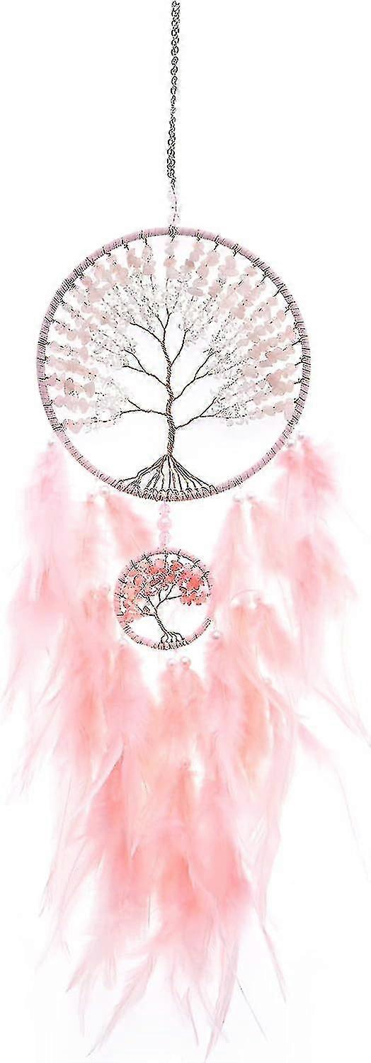 Tree Of Life Dream Catcher Wall Decor With Healing Crystal Stone,handmade Feather Dream Catchers Wall Hanging For Blessing Gifts Living Bedroom Weddin