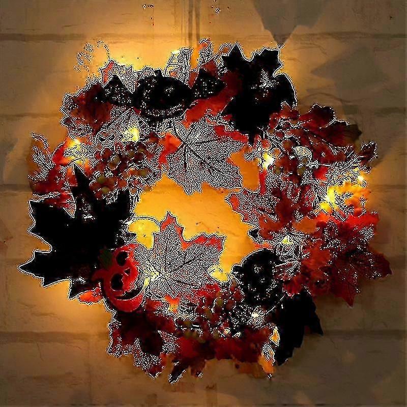 Halloween Wreath With Light Emitting Diode Lights And Hanger, Autumn Front Door Autumn Wreath Halloween Decor Home Thanksgiving Decor Maple Berry Pump