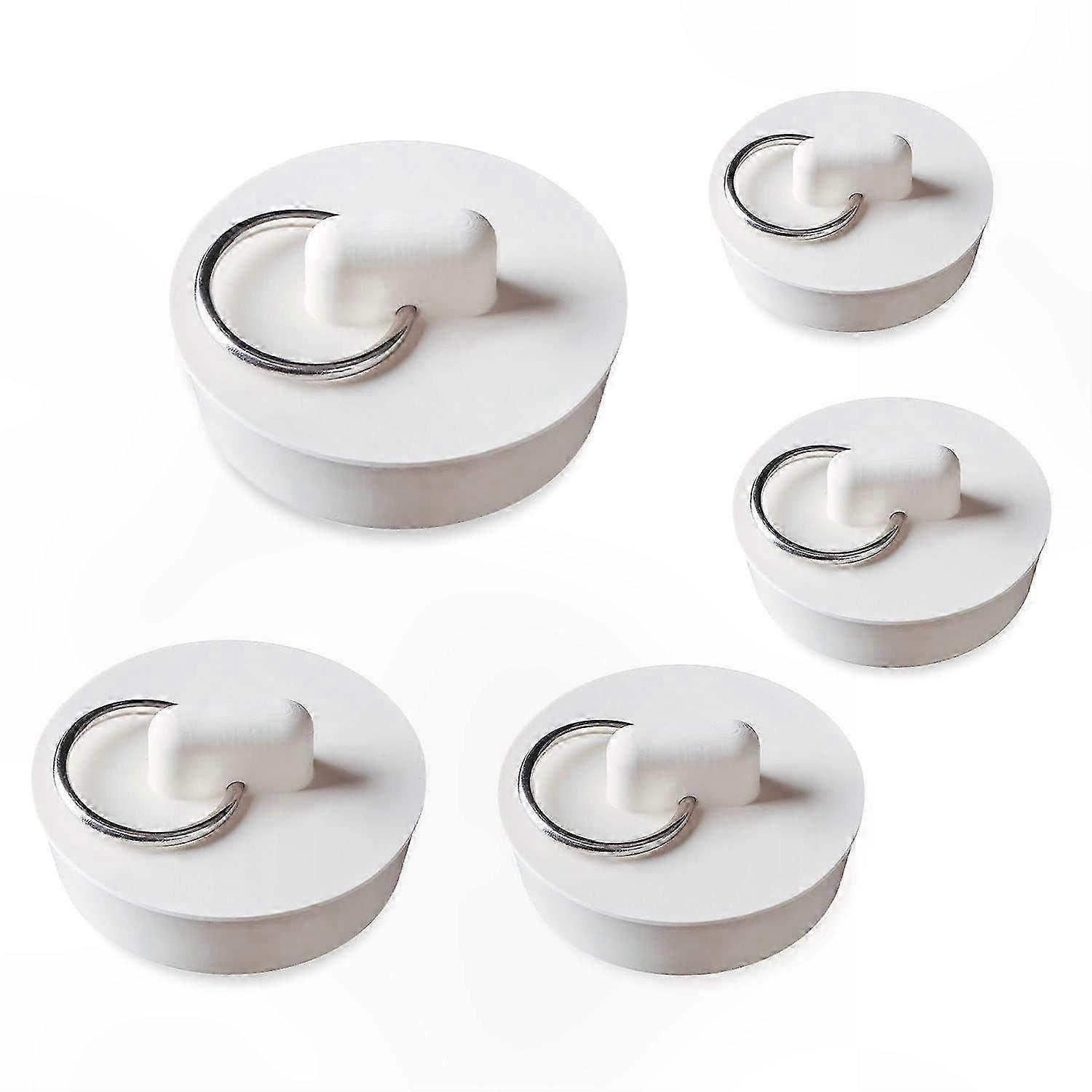 White Sink Drain Stopper Set - 5 Sizes Rubber Bathtub Plug for Bathroom Basins