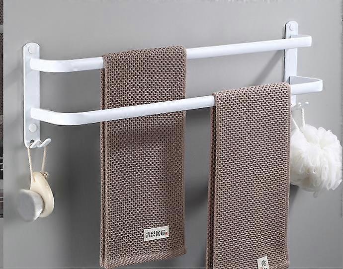 White Towel Rack Wall Mounted Multi-Layer Towel Bars with Hooks Space Aluminum Towel Rack - 2 Layer 50cm