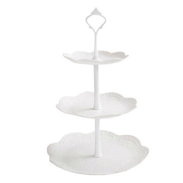 White Plastic 3-Tier Serving Tray 3 Tier Dessert Cake Stand 3 Layer Fruit Bowl Round.
