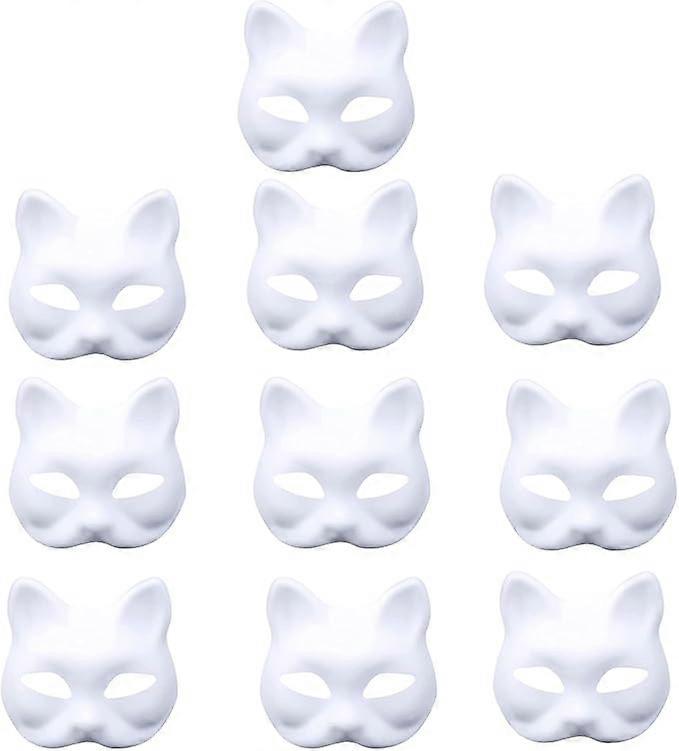 Pack of 10 White Masks, Cosplay, Unpainted Masquerade Mask, White Paper Mask, Unpainted Cat Masks for Carnival Cosplay Halloween Party