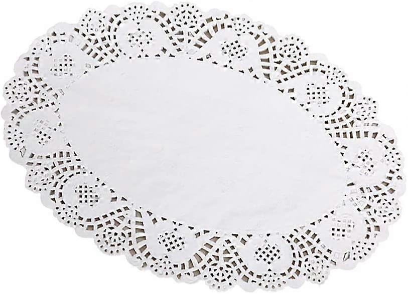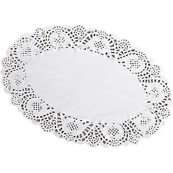 White Lace Paper Doilies - 7 inch x 10 inch Oval Round Paper Doilies - Disposable Paper Placemats - for Wedding, Birthday, Cakes, Desserts, Tableware