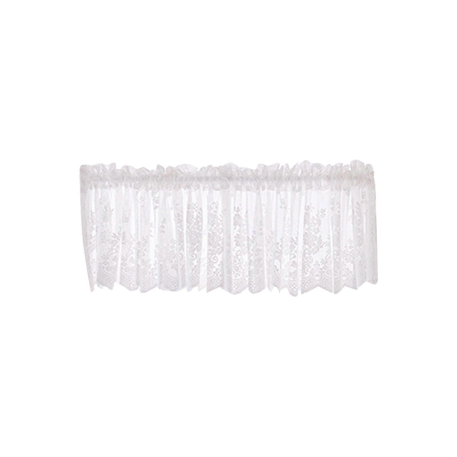 White Lace Valance Curtains Semi Sheer Floral Embroidered Window Valances for Kitchen Bathroom, Living Room
