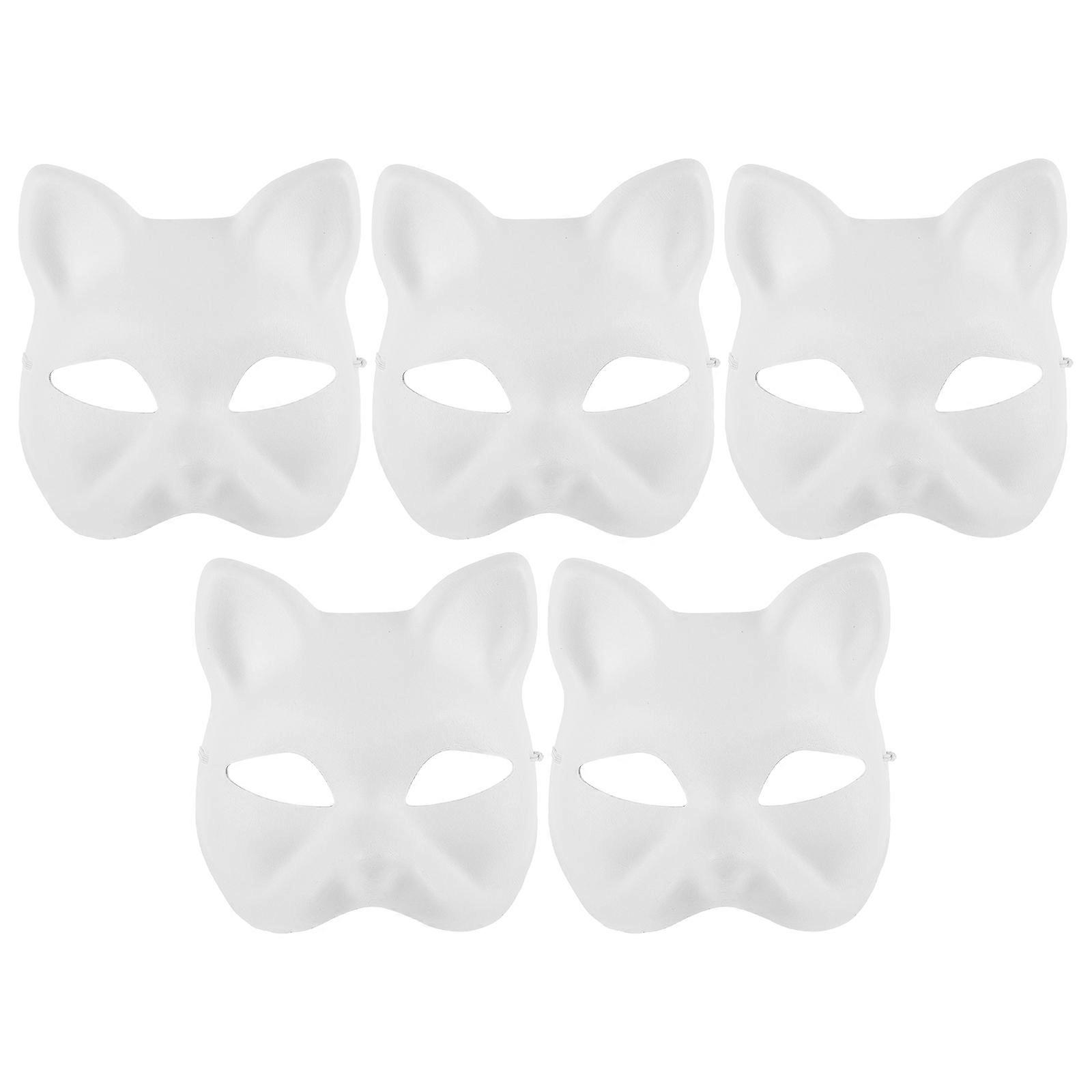 White Cat Face Mask DIY Paintable Mask for Halloween Party 25Pcs
