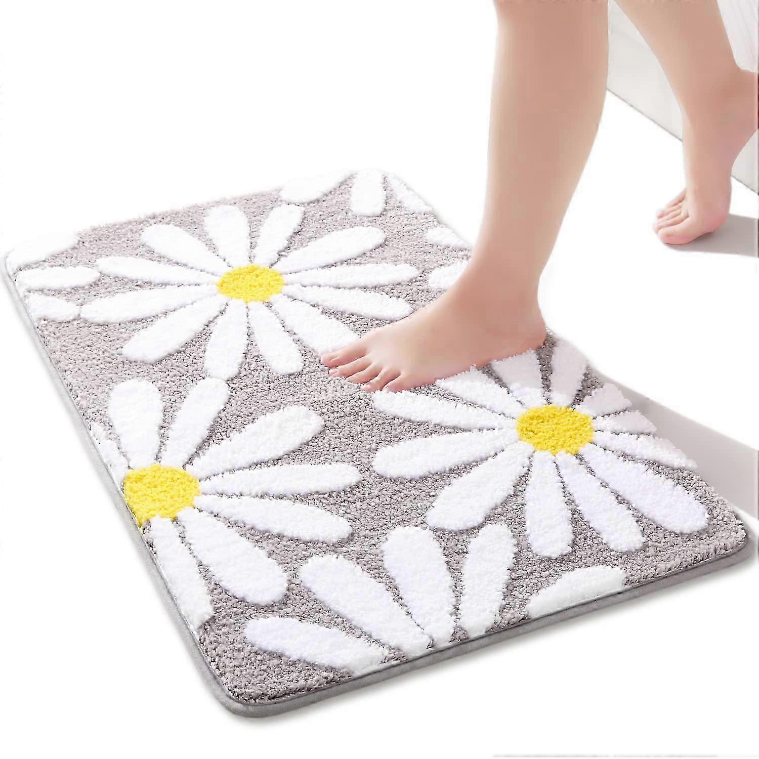 White Flower Non-Slip Bath Mat 40x60cm, Absorbent Shower Rug, Machine Washable Bathroom Floor Mat