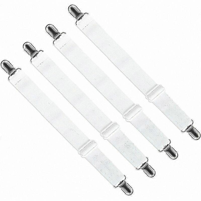 White Adjustable Sheet Stretcher Straps (Pack of 4), Fits 65cm to 200cm, Secure Fit for Beds, Sofas, and Ironing Covers