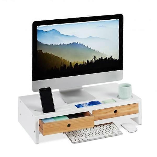 Screen stand with 2 drawers in white